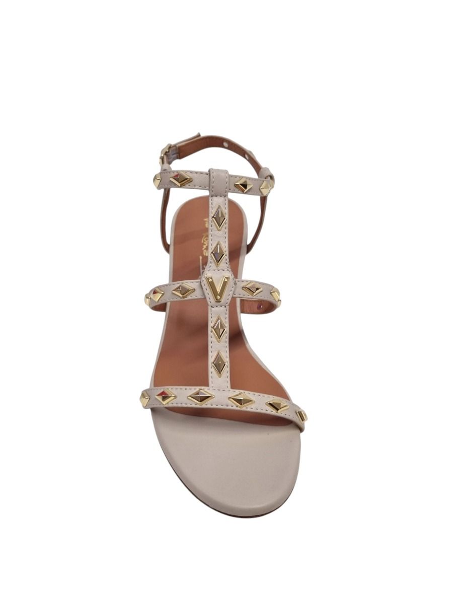 Sandalo borchie e V oro in pelle burro 4630
