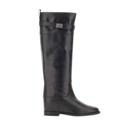 Stivale in pelle con lucchetto oro apribile. Con zeppa interna di 3,5 cm