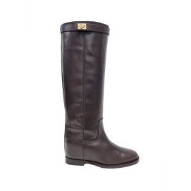 Stivale in pelle con lucchetto oro apribile e zeppa interna da 3,5 cm