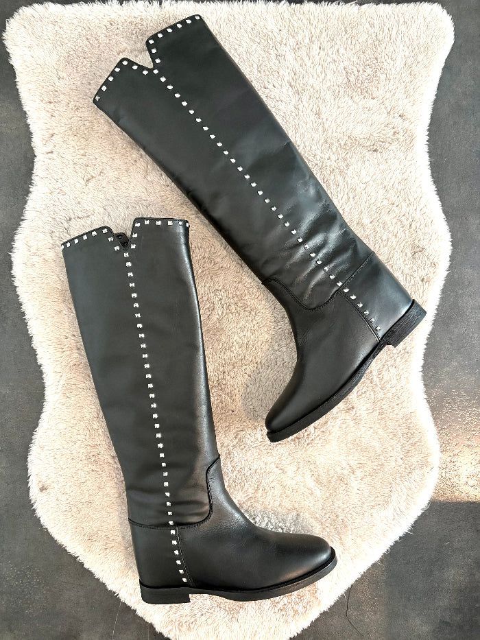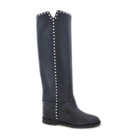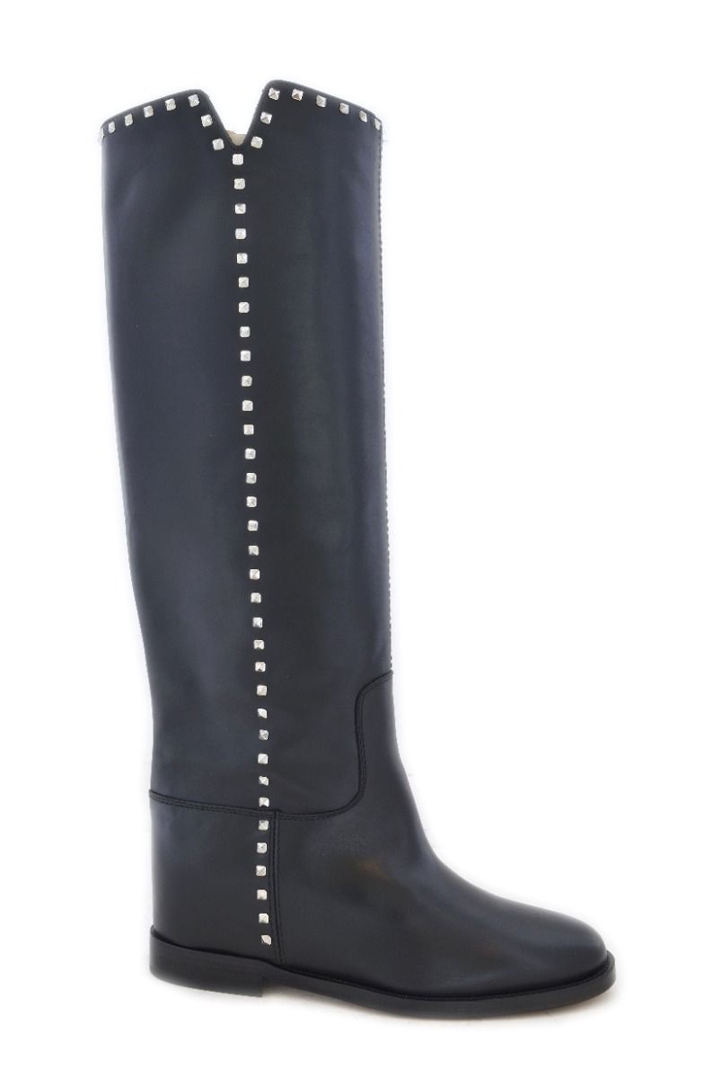 Stivale in pelle con zeppa interna di 3,5 cm e borchie argentate
