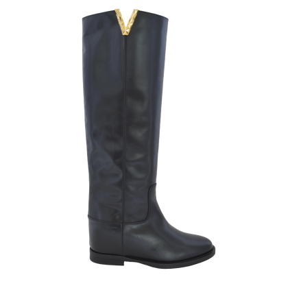 - Stivale V oro 2568 pelle neraIconico stivale in pelle nera con V liscia oro e zeppa internaA partire da 380,00 €