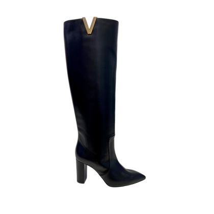 - Stivale V oro tacco esterno punta a punta pelle nera 4096Stivale in pelle con V oro e tacco esterno di 8,5 cm, con gomma antiscivolo. Senza zeppa interna.A partire da 375,00 €