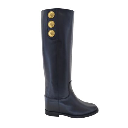 - Stivale borchie oro pelle nera 4482Stivale in pelle con 3 bottoni oro e zeppa interna di 3,5 cmA partire da 410,00 €
