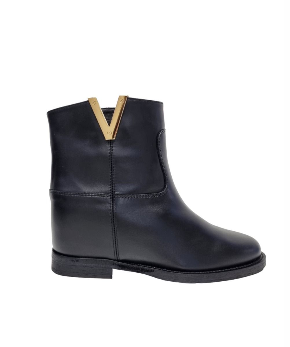 Tronchetto in pelle con V iconica oro e zeppa interna di 3,5 cm